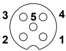 The M12-5P-Female connector has five pins arranged in a circular pattern. The pinout is as follows: