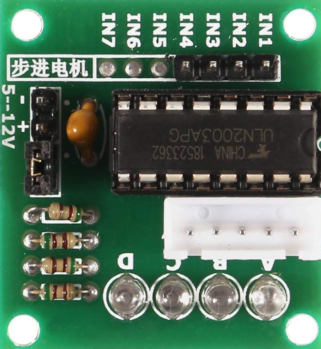 The 28BYJ-48 is commonly used with the ULN2003 driver board. Below is the pin configuration for the driver board: