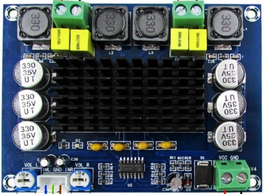 The TPA3116 is typically used in pre-assembled amplifier boards. Below is a general description of the key pins and terminals found on such boards: