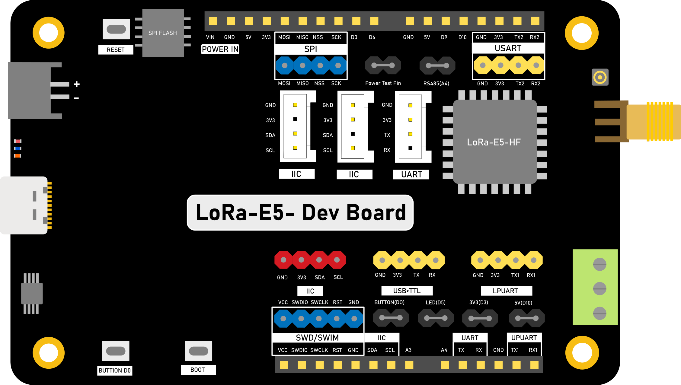 The LORA E5 Development Kit is a compact and versatile development board designed for LoRa (Long Range) communication. It integrates the LORA-E5 module, which combines a powerful STM32 microcontroller and a Semtech SX126X LoRa transceiver. This development kit is ideal for prototyping IoT applications that require long-range, low-power wireless communication.